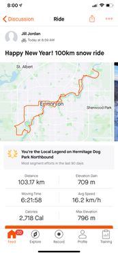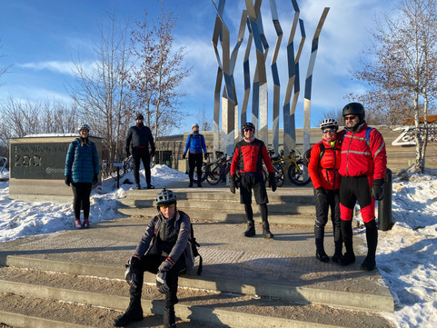 The remaining 4 riders kept riding. Winding through the beautiful, scenic Edmonton river valley. We mostly stayed on the multiway. It is a combination of paved and granular trail of course unnoticed due to the snow pack. At the 60 km mark we hit the northeast edge of the city and end of trail. Instead of following the same way back, the decision was made to take the high ground above the river valley on the way back and shave off the additional 20 km so we could finish before dark. One quick stop at the Mcdonalds on 137 ave and Vic trail for a bathroom and coffee stop and right back at it. After 7 3/4 hours we made it back to the start point.